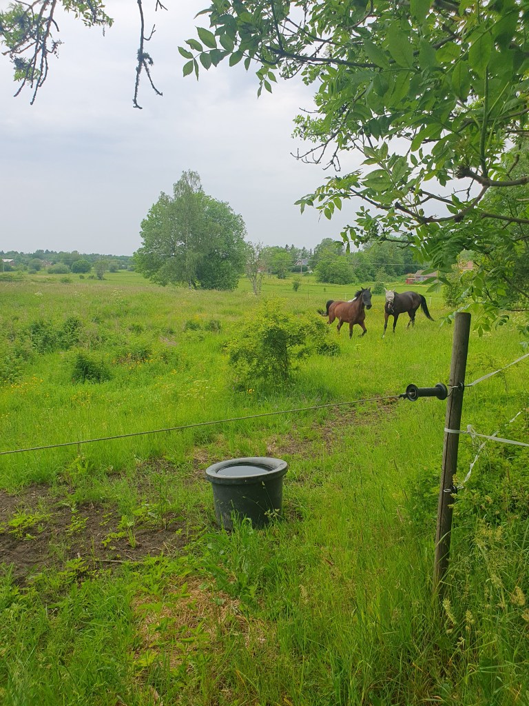 Idag var vi i stallet tidigt och släppte ner hästarna i deras sommarhage under några timmar. Då sommargräset är så kraftigt så kan man inte bara, släppa ut dom och låta dom gå där hela sommaren, utan man behöver vänja dom försiktigt vid gräset, annars finns risk för både kolik o även Gång så denna vecka får dom gå några timmar om dagen, sen nästa vecka kommer dom få gå där dygnet runt💞