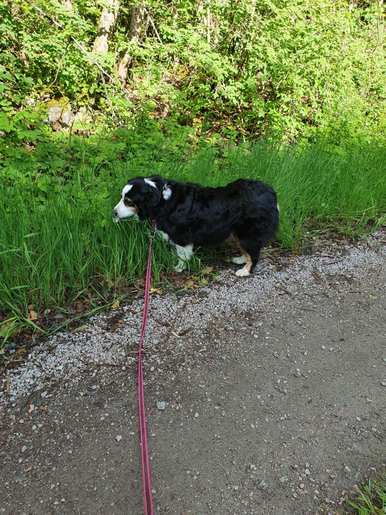 Loke har haft magknip sen födseln egentligen så vi går mycket promenader, i vagnen trivs han bra för det mesta o reagerar inte ens när Panda skäller ut andra hundar längs vägen 🤦😅