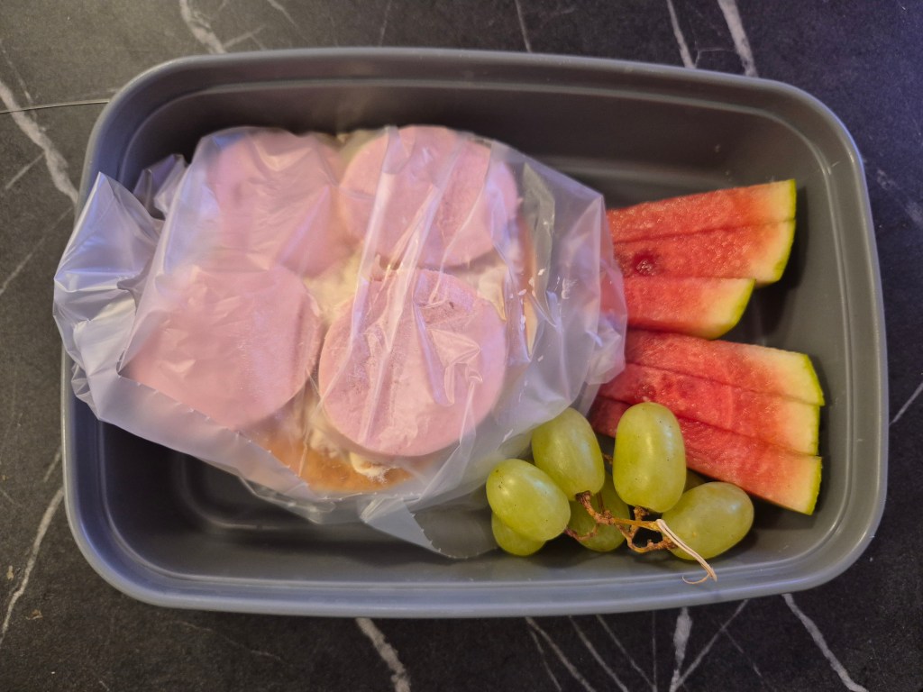 Jag började morgonen med en mysig frukost och så hjälpte jag till att släppa ut hästarna i stallet efter att Ida åkt till skolan i sin taxi. Idag hade hon en sämre dag, hon var väldigt yr men vi kämpar på. Hon ger upp väldigt lätt och låter hennes kropp styra så det jobbar vi på att hon ska styra över din kropp. Idas frukost bestod av en macka ned falukorv, lite vattenmelon och lite vindruvor, hon är för trött för att äta hemma så hon får med sig till skolan.